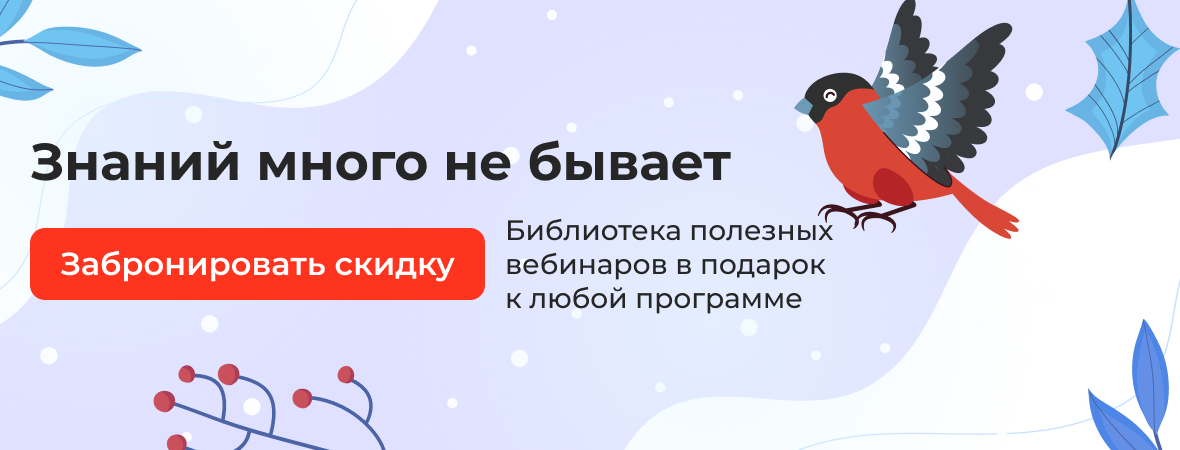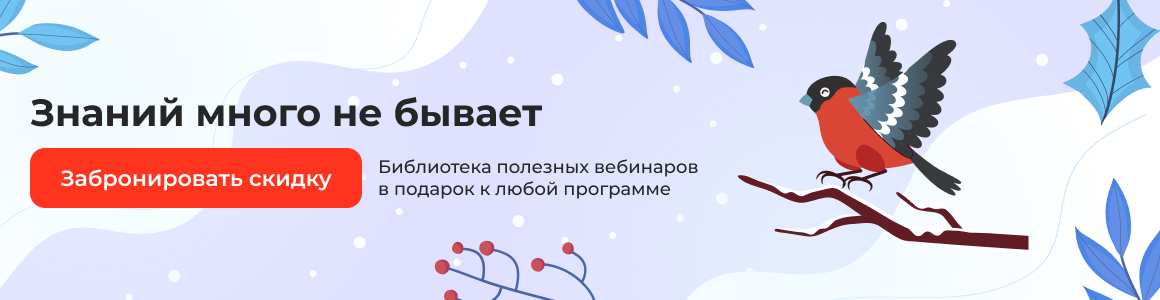 Вебинары отлично дополняют основную программу курса, а их расписание составляется с учетом обратной связи от студентов и преподавателей. Вебинары можно смотреть онлайн или посмотреть запись в архиве, который будет доступен вам на протяжении всего срока обучения.